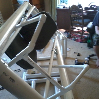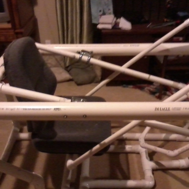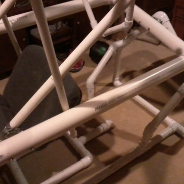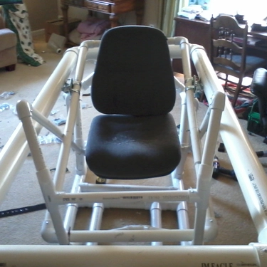While creating this PVC monstrosity, I was trying to work out how to further immerse the “pilot” in the game. The plastic piping of the gimbal was already under a lot of stress when someone was sitting in it, so how was I going to mount a monitor to it?